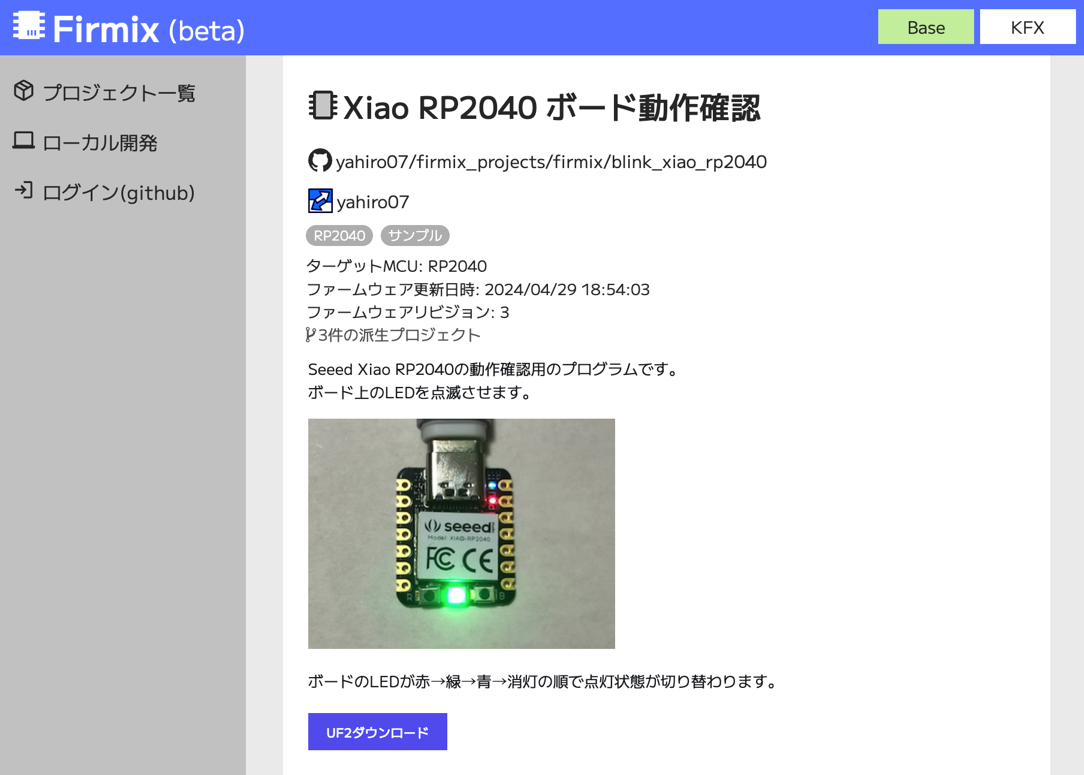 ここではSeeed Xiao RP2040にこちらの動作確認用のプログラムを書き込みます。