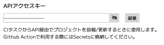 設定画面でAPIのアクセスキーを生成します。